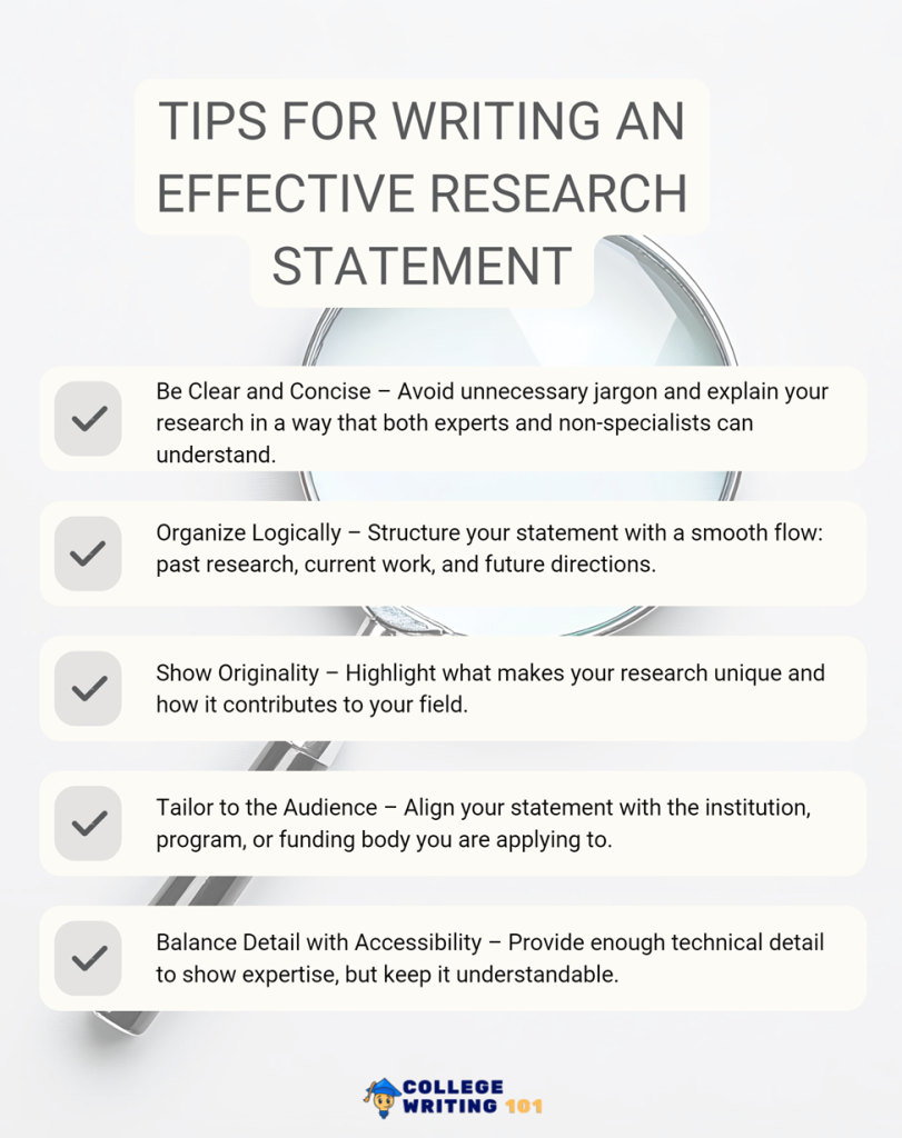 Exceptional research statements communicate complex ideas with remarkable clarity. They translate specialized terminology and theoretical concepts into language accessible to educated readers across disciplines, without sacrificing intellectual rigor. This accessibility demonstrates the researcher’s deep understanding of their work and ability to engage diverse audiences.